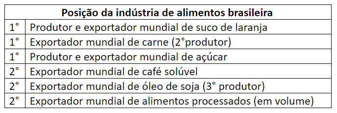 Como dito anteriormente, no ano de 2019 o Brasil se consolidou novamente como o segundo maior país exportador de alimentos industrializados, permanecendo no ranking apenas atrás dos Estados Unidos.